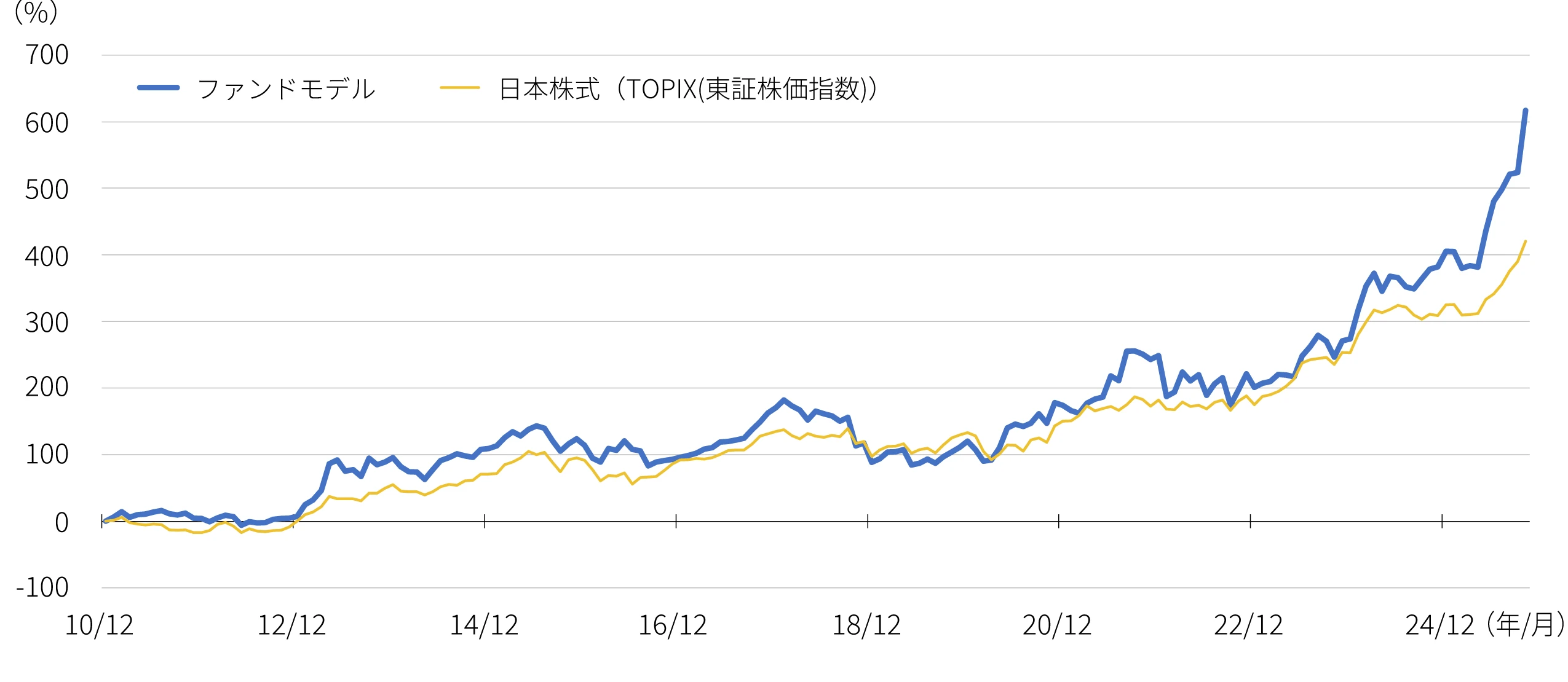 ファンドの詳細 ファンドの詳細ファンドモデル(SMT 日本株式モメンタムファンド)と日本株式の累積リターンの推移