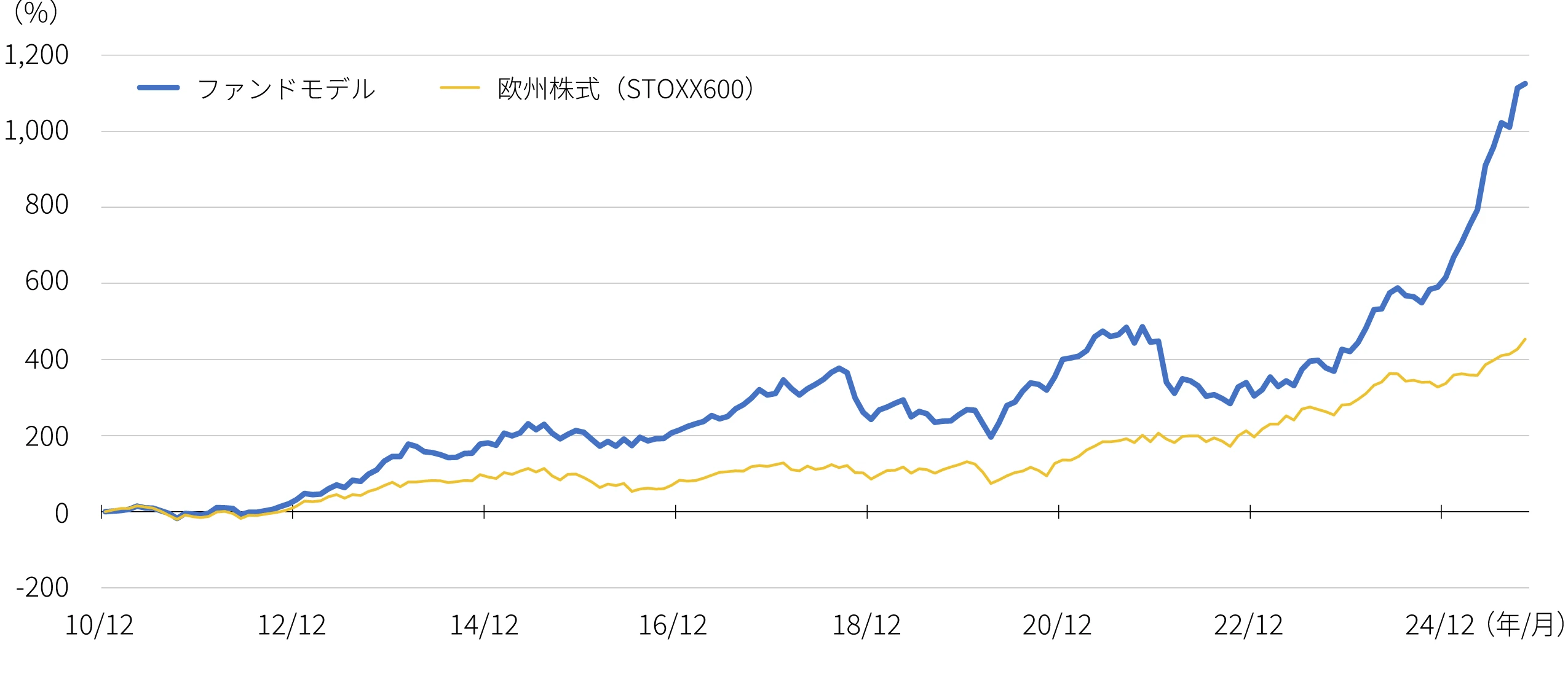 ファンドの詳細 ファンドの詳細ファンドモデル(SMT 欧州株式モメンタムファンド)と欧州株式の累積リターンの推移