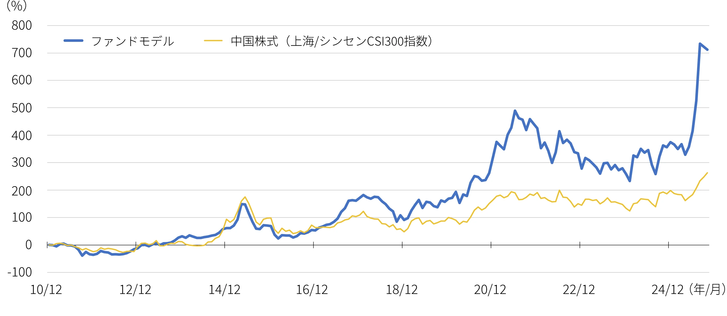 ファンドモデルは、SMT 中国株式モメンタムファンドと同様の運用プロセスに基づき算出したシミュレーションのデータ(信託報酬控除前)です。