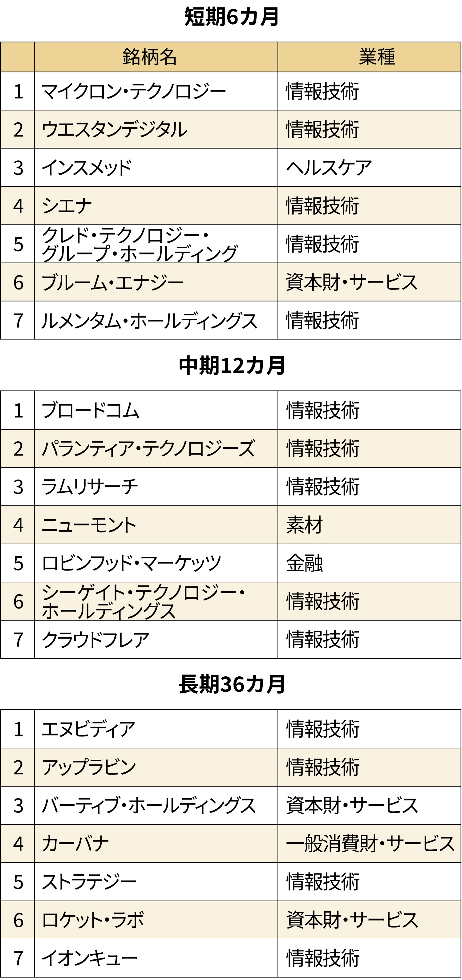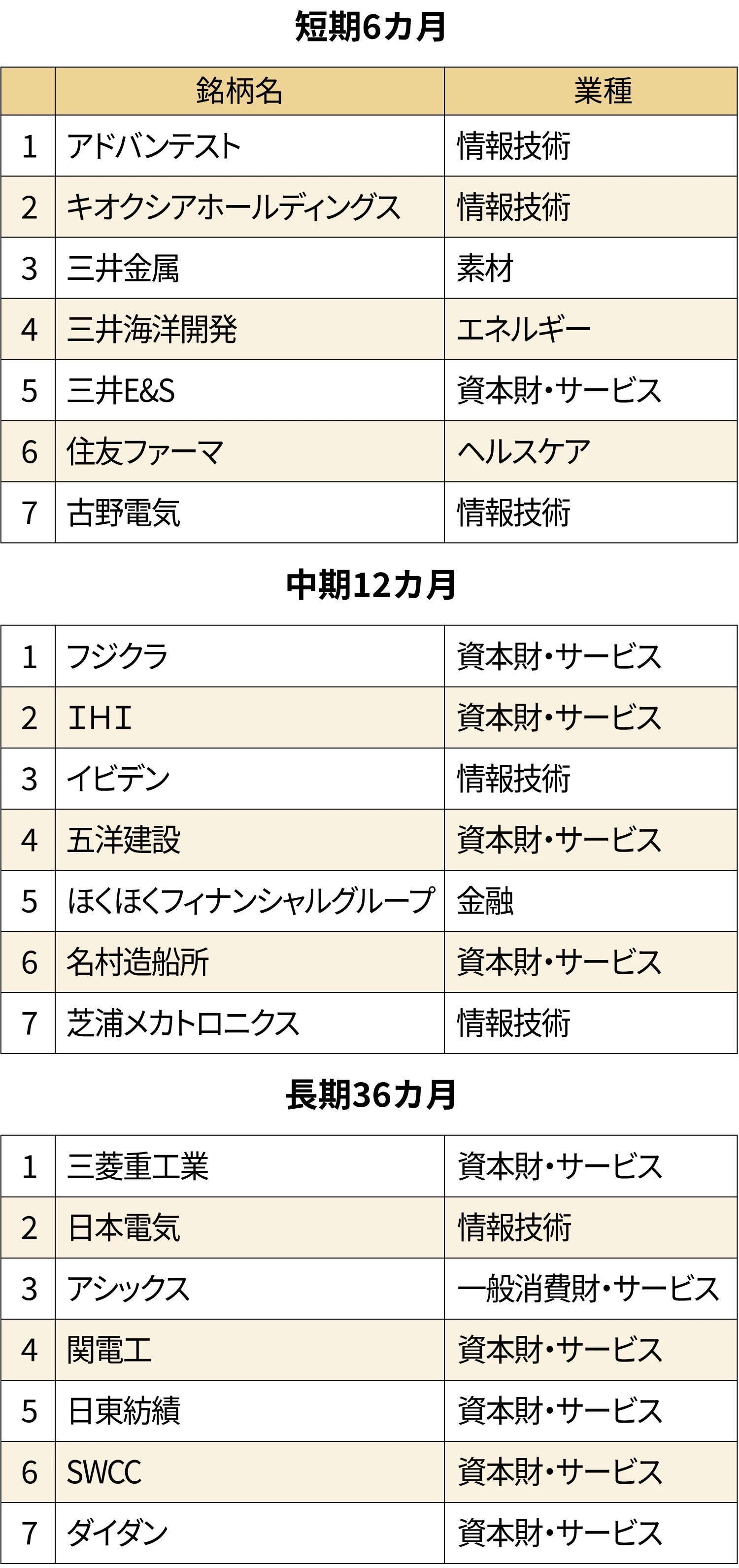上位7銘柄